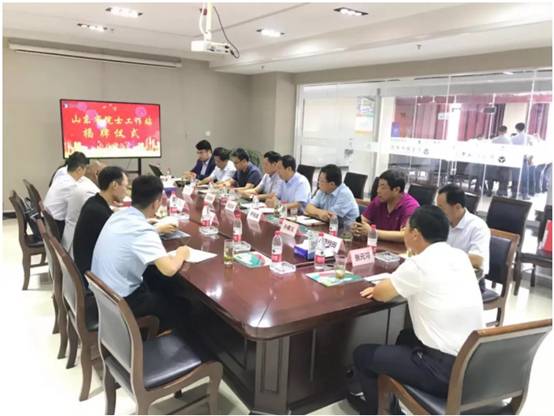 沂南縣政府副縣長(cháng)楊玉環(huán)、沂南縣政府辦公室副主任、經(jīng)濟發(fā)展辦公室主任李湘軍、沂南縣科技局局長(cháng)高澤祥等政府領(lǐng)導及東岳機械董事長(cháng)孫春義、總裁孫京偉出席了院士工作站的揭牌儀式。